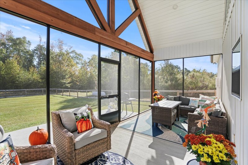 Outdoor living is equally impressive, offering two screened-in porches and a charming covered front porch—each with ceiling fans—perfect for enjoying morning coffee or evening sunsets overlooking the tranquil landscape.