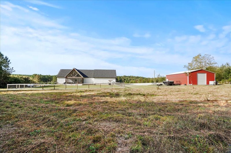 •    30x40 detached workshop with concrete floors, insulation, shelving, workbenches, and dual 10x10 roll-up doors—ready for power with its own meter