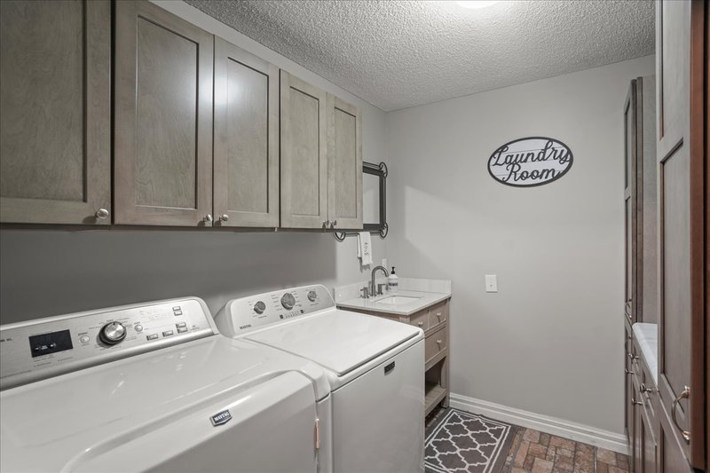 The family room offers a warm and inviting space for relaxing or hosting guests, while the separate dining room provides an elegant setting for gatherings and celebrations. A large laundry room with built-in cabinets ensures plenty of storage and organization, and a multipurpose room offers extra space perfect for a second refrigerator, freezer, or additional storage needs. Plantation shutter throughout the home.